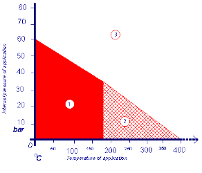 PT 图仅提供设计指导 – 没有压力/温度限制,具体参考 KLINGER expert 垫片设计软件。